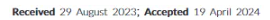 第三篇Research类型文章“了解比利时 HIV 诊所提供 PrEP 服务的适应性反应:使用实施科学框架的多案例研究”,于2023年8月29日投稿,2024年4月19日接收,从投稿到接收用时6个多月。