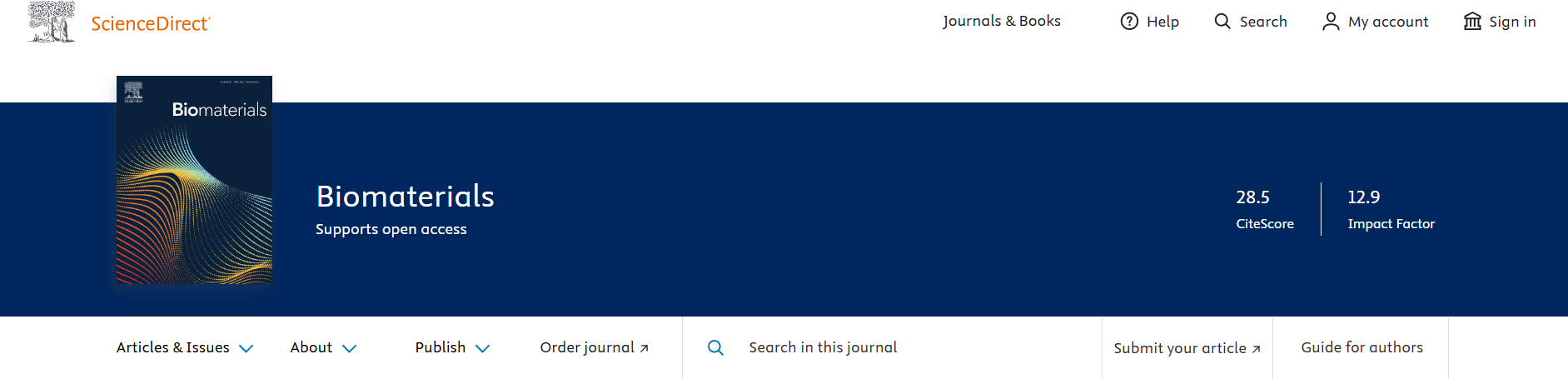 期刊官网:https://www.sciencedirect.com/journal/biomaterials