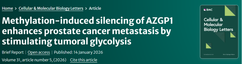 前列腺癌(PCa)是全球男性第二高发恶性肿瘤,转移是导致患者死亡的首要原因,临床缺乏可靠的无创转移预警标志物,且表观遗传与代谢重编程在转移中的交叉调控机制尚未明确。近日,南京大学医学院附属鼓楼医院团队在《Cellular & Molecular Biology Letters》(IF=10.2,肿瘤领域优质期刊,开源获取)发表重磅研究,整合单细胞测序、bulk转录组、甲基化组多组学技术,结合体内外实验、临床样本验证,首次完整揭示“AZGP1启动子甲基化→基因沉默→糖酵解激活→前列腺癌转移”的调控链条,关键结果均有明确图表支撑,为前列腺癌转移的动态监测、预后评估及靶向治疗提供可直接转化的方案。