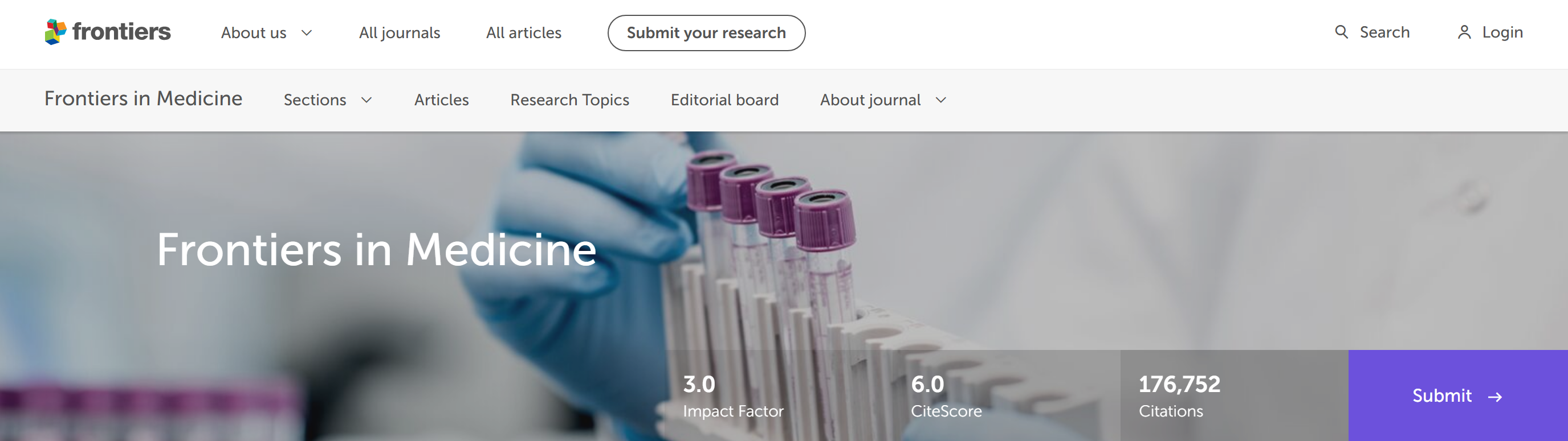 期刊官网:https://www.frontiersin.org/journals/medicine