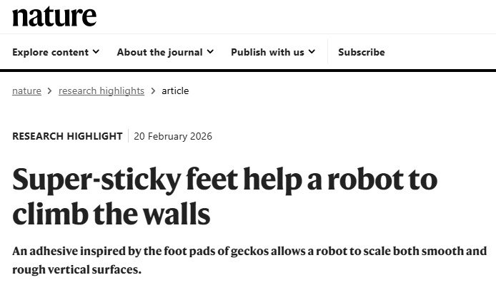 总结与展望:本研究通过巧妙的分子结构设计,开发出具有“分子毛发”的仿生聚合物PMVS-ODT,成功解决了仿生粘附剂在粗糙表面上粘附力弱、适应性差的关键难题。该材料集超强粘附、易脱附、低预压力需求、可大规模制备等优点于一身,为爬壁机器人、机器人抓手、对接系统乃至太空在轨服务等领域提供了全新的技术方案。尽管目前机器人攀爬速度受限于材料导热性导致的较长冷却时间,以及大尺寸足垫可能存在的应力集中问题,但未来可通过引入导热填料、优化足垫几何结构(如采用六边形分区设计)和调控交联剂比例等策略加以解决。这项研究为开发下一代高性能、多功能的仿生粘附材料及机器人系统开辟了新的道路。