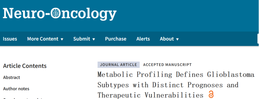 期刊:Neuro-Oncology(IF=13.4,神经肿瘤领域顶刊,中科院 1 区 Top)