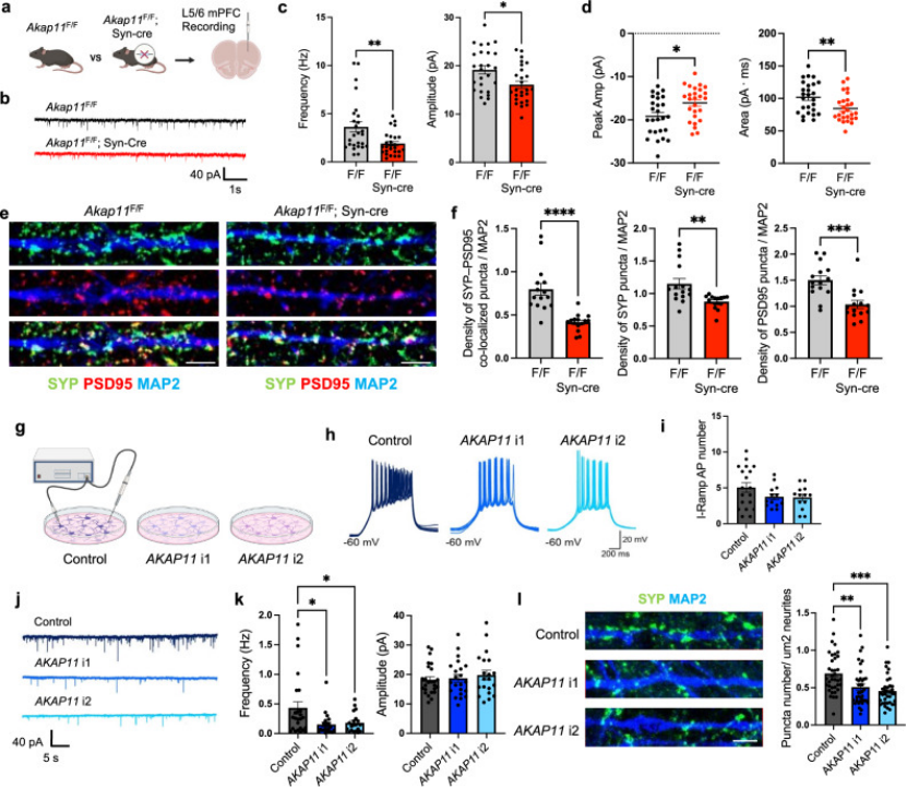 人源模型提价值:在人诱导神经元中敲低AKAP11,复现了小鼠模型的突触传递受损表型,直接提升研究的“临床转化意义”——毕竟我们的最终目标是服务人类疾病。