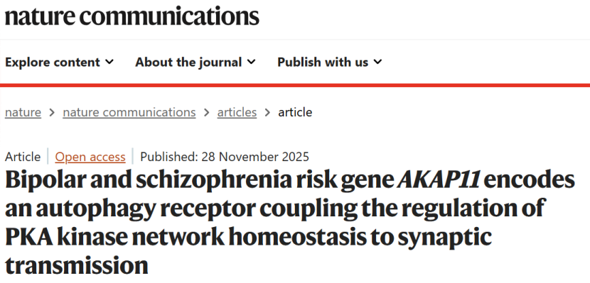 关键词:AKAP11、双相情感障碍、精神分裂症、多组学、自噬调控、突触功能