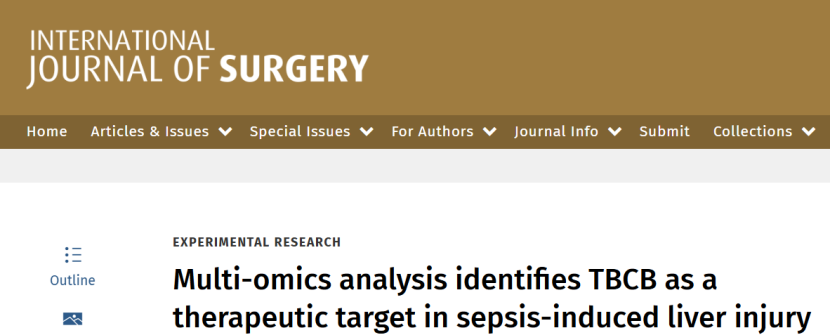 脓毒症作为全球重症医学领域的“致命难题”,死亡率居高不下(约20-30%),其中肝损伤是其最突出的器官并发症之一,严重加剧病情进展,但目前尚无针对性靶向治疗药物。近日,重庆医科大学附属第二医院团队(通讯作者Zuojin Liu等)在《International Journal of Surgery》(IF=10.3,外科领域顶刊,开源可免费获取)发表重磅研究,通过多组学整合、孟德尔随机化(MR)、体内外实验及分子模拟等多种技术,首次锁定TBCB为脓毒症诱导肝损伤的关键治疗靶点,阐明其通过调控代谢重编程和炎症反应驱动疾病进展的核心机制,并筛选出潜在小分子治疗药物,为脓毒症的精准治疗提供了全新策略。