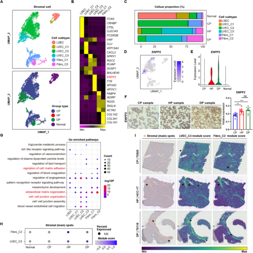 4. 基质细胞异质性(微环境补充):HP组富集ENPP2+血管内皮细胞(图6D-F),DP组富集COL1A1+成纤维细胞(图6C、6I);