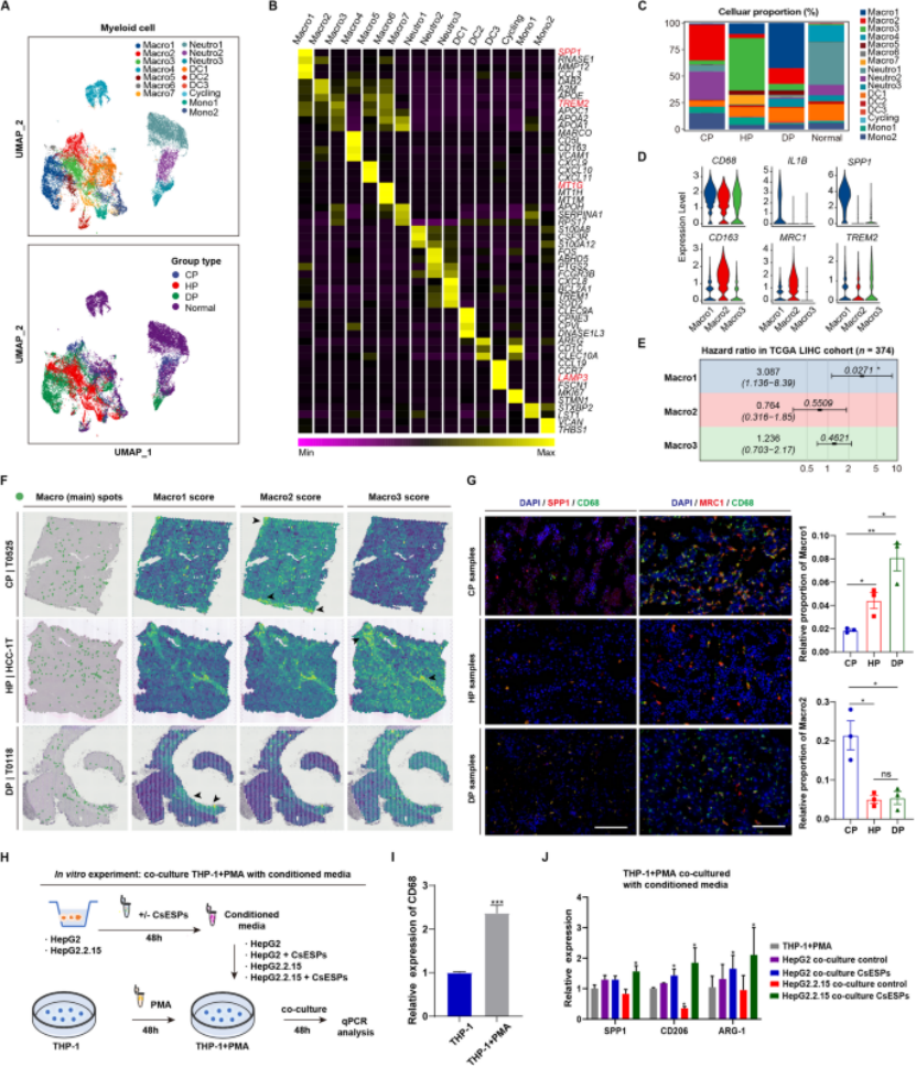1. 预后标志物:华支睾吸虫感染状态可作为独立预后指标,SPP1+巨噬细胞可作为DP组不良预后标志物;