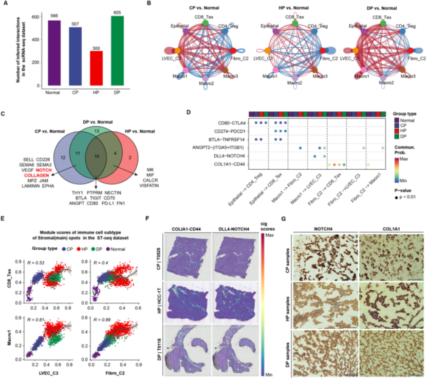 5. 空间互作机制(升华创新点):DP组COL1A1-CD44、DLL4-NOTCH4配体-受体对空间富集,强化免疫抑制微环境(图7F-G)。