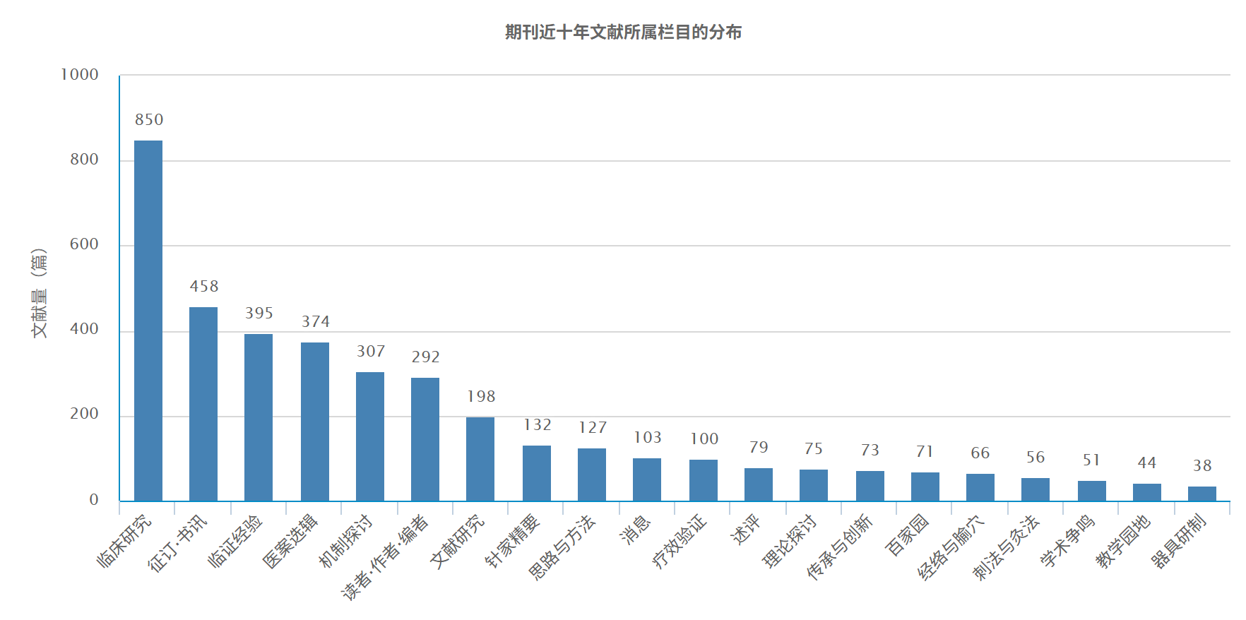 从文献所属栏目来看,该期刊的发文类型以临床研究、征订·书讯、临证经验、医案选辑、机制探讨等为主。
