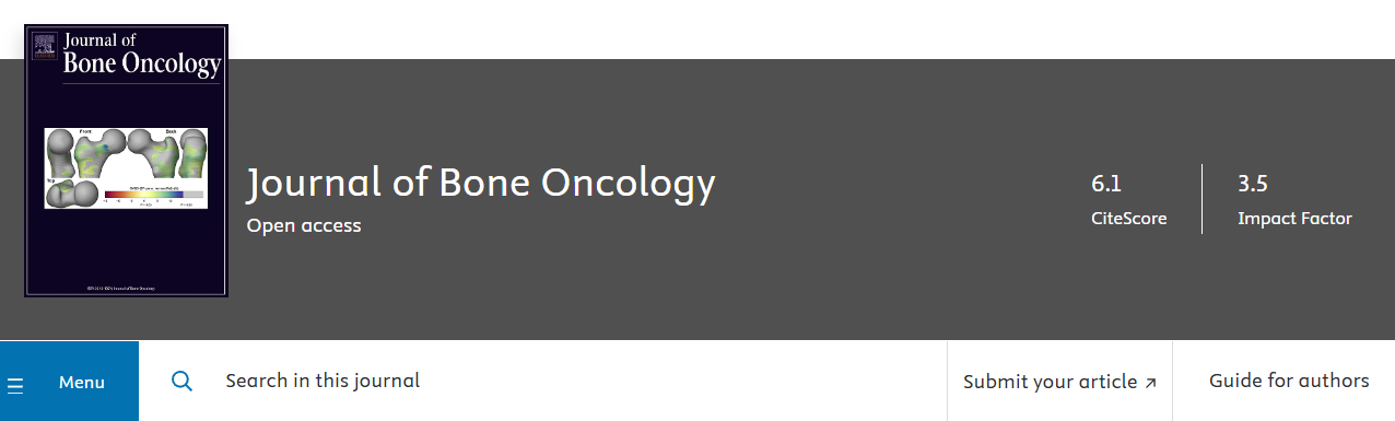 期刊官网:http://www.journals.elsevier.com/journal-of-bone-oncology/ JOURNAL OF BONE ONCOLOGY