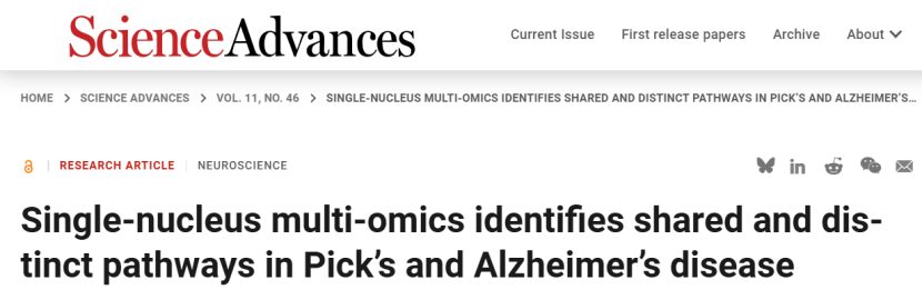 原标题:Single-nucleus multi-omics identifies shared and distinct pathways in Pick’s and Alzheimer’s disease