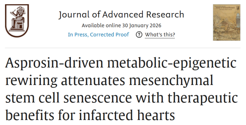 原标题:Asprosin-driven metabolic-epigenetic rewiring attenuates mesenchymal stem cell senescence with therapeutic benefits for infarcted hearts