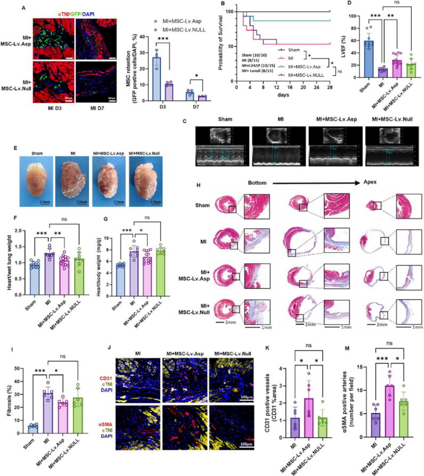 第五步:体内动物实验,验证 Asprosin 工程化衰老 MSC 的心梗治疗效能(图 9)