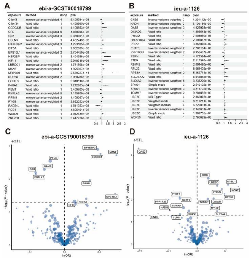 因果验证:孟德尔随机化分析 24 个 GWAS 队列,证实 P4HA2、OCIAD2 等基因与乳腺癌存在因果关联(图 7A-D);