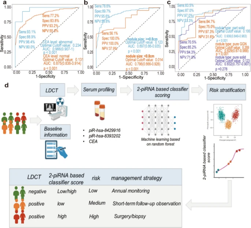 关键词:肺腺癌、PIWI-interacting RNAs(piRNAs)、液体活检、早诊标志物、不确定肺结节、多中心队列、机器学习