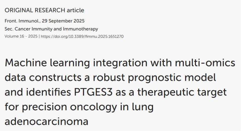 原标题:Machine learning integration with multi-omics data constructs a robust prognostic model and identifies PTGES3 as a therapeutic target for precision oncology in lung adenocarcinoma