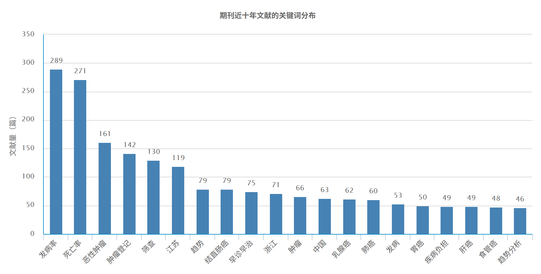 在该期刊中,"发病率"栏目的发文量最高,其次是"死亡率"、"恶性肿瘤"、"肿瘤登记"、"筛查"等。