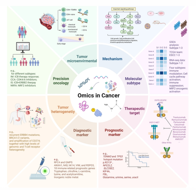关键词:食管鳞状细胞癌、高通量组学、基因组、转录组、代谢组、蛋白质组、诊断标志物、预后标志物、治疗靶点、肿瘤微环境