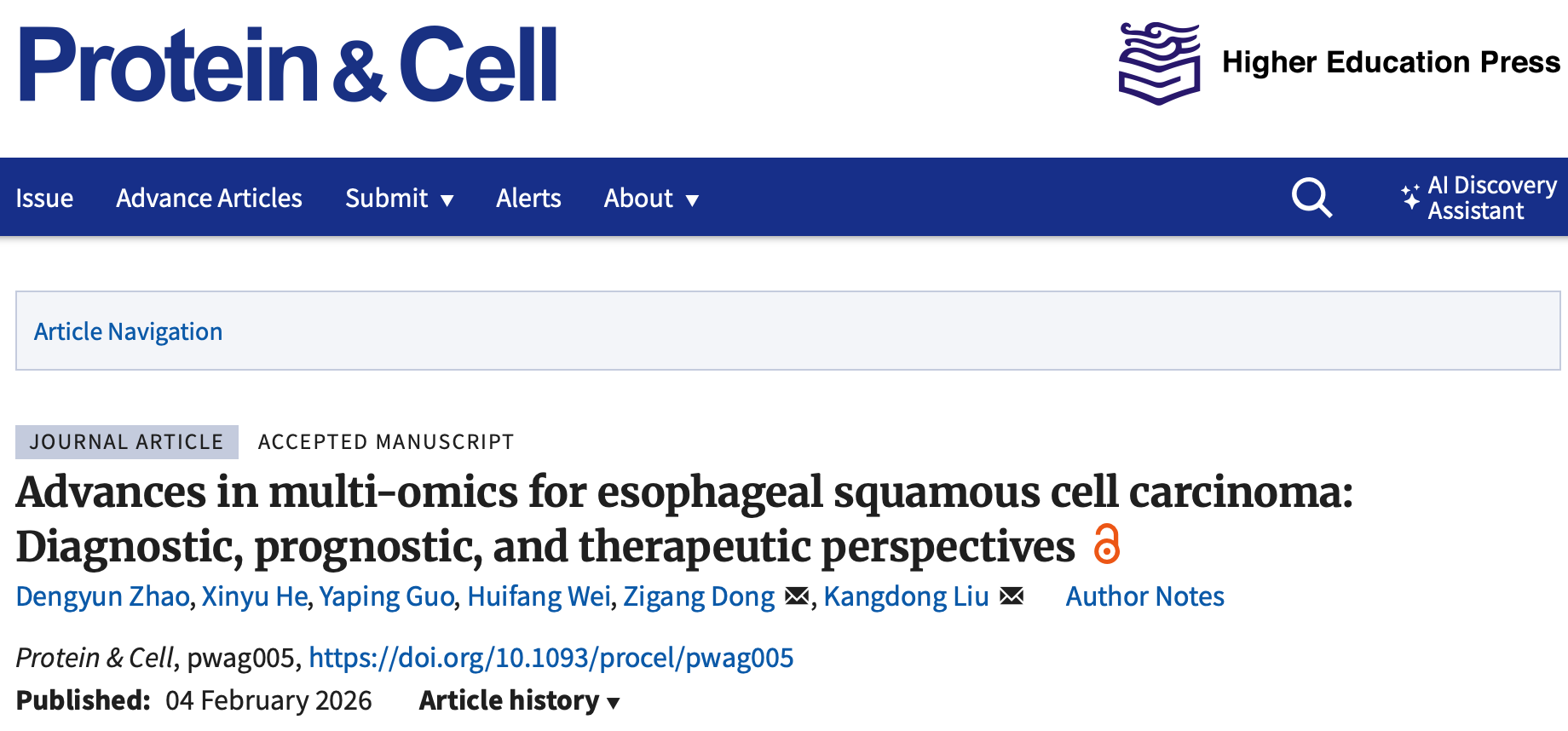郑州大学团队在《Protein & Cell》发表的这篇多组学综述,不仅全面解析了食管鳞癌的高通量组学分子特征,为ESCC 的精准诊断、预后评估和靶向治疗提供了重要依据,更以0 版面费开源发表的模式,让更多研究者能免费获取研究成果,助力食管鳞癌领域的发展。同时,这篇研究的行文和研究逻辑,也为临床医生发表多组学顶刊论文提供了可复制、可借鉴的范本 —— 多组学研究的核心从来不是 “技术的堆砌”,而是以技术为工具,解决临床问题,实现临床转化。