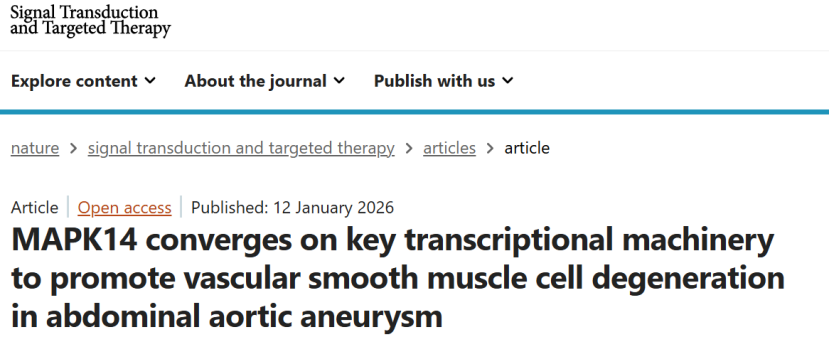 原标题:MAPK14 converges on key transcriptional machinery to promote vascular smooth muscle cell degeneration in abdominal aortic aneurysm