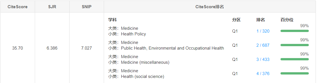 官网链接:http://www.thelancet.com/journals/lanplh/issue/current LANCET PLANETARY HEALTH在中科院分区(最新升级版):大类学科-医学;小类学科:环境科学及公共卫生、环境卫生与职业卫生;Top期刊,非综述期刊。 JCR分区:在Health Policy排第1名,位于Q1区;在Public Health, Environmental and Occupational Health排第2名,位于Q1区;在Medicine (miscellaneous)排第3名,位于Q1区;在Health (social science)排第4名,位于Q1区。 LANCET PLANETARY HEALTH的影响因子整体比较平稳,近年小幅度下降。2021年度为28.75分,2022年度为25.7分,2023年度为24.2分,2024年度为21.6分。 根据LetPub网站及网友分享,从投稿到在线发表约为8-12周。 根据Web of Science收录论文(Editorial Material,Article,Letter)的统计,LANCET PLANETARY HEALTH在Web of Science 核心合集的1299 篇出版物中,文章类型上,以Editorial Material为主,共514篇,占比约39.569%;其次是Article类型,为471篇,占比约为36.259%;Letter类型的文章93篇,占比约为7.159%。 根据WOS收录的文章来看,LANCET PLANETARY HEALTH的年发文量近年来比较稳定。2021年175篇,2022年162篇,2023年145篇,2024年165篇,截至2025年9月,LANCET PLANETARY HEALTH被SCI收录的论文已达114篇。 目前期刊总计发文量为1299篇,其中发文量最多的为美国学者,共461篇,占比约45.598%;第二名是英国学者,共发文357篇,占比约为35.312%;澳大利亚学者发文198篇,发文量排名第三,占比约19.585%。 根据LANCET PLANETARY HEALTH的自引率趋势分析,这本期刊的自引率整体维持在较低水平,2024年已下降到3%以内。2021年度为2.3%,2022年度的自引率为2.3%,2023年度为2.9%,可以暂时不用担心自引率的问题。 LANCET PLANETARY HEALTH是一本开放获取(OA)期刊。选择开放获取模式,需要支付7350美元,折合人民币约52354元。 文章类型: Editorial Material,Article,Letter,Review Article,Meeting Abstract,Correction,Meeting等。 研究方向: 气候变化与健康,污染与健康,生物多样性丧失与健康,土地利用与粮食系统,能源、技术与转型。 LANCET PLANETARY HEALTH在最新中科院分区表中位于医学1区,JCR的环境科学、公共卫生、环境卫生及职业卫生学科的Q1区,2024最新影响因子下降至21.6。LANCET PLANETARY HEALTH发文量维持在87篇,目前国人发文量排名第六。审稿速度一般在2-3个月可以接受,OA期刊,版面费约52354元。 专注期刊投稿、发表十年,任何投稿、写作难题欢迎咨询!
