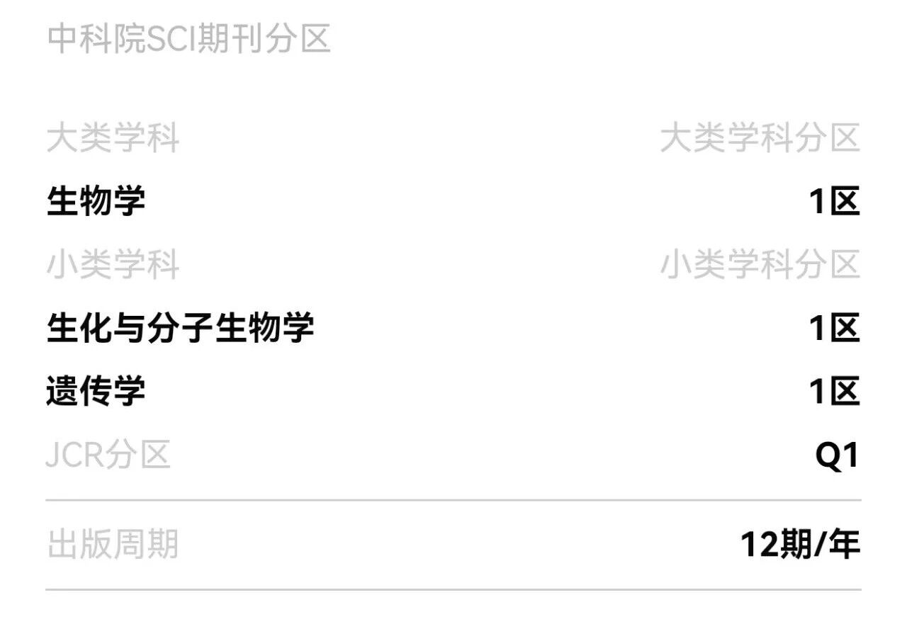 从 3 区到 1 区 Top,JGG 的逆袭不仅是自身学术实力的证明,更是国产英文学术期刊走向国际的缩影。如今的 JGG,不仅是中科院 1 区 Top、JCR 双 Q1 的高影响力期刊,更凭借对国人友好、审稿高效、费用灵活、非预警的多重优势,成为遗传学、生化与分子生物学领域科研人发表高水平成果的优质选择。