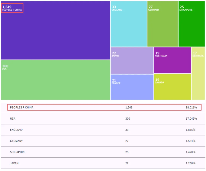 对于国内科研人而言,JGG 堪称 “宝藏期刊”,其对国人的友好程度在国际期刊中实属罕见。据 WOS 数据统计,JGG 累计发文中国学者贡献了 1549 篇,占比高达 88.011%,而近两年来国人发文占比更是飙升至 96% 以上,断层式领先全球,美国、英国学者发文占比分列二、三位,差距悬殊。这意味着国内学者的研究成果在该期刊中更易获得认可,减少了跨文化的学术沟通壁垒。