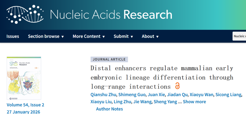 原标题:Distal enhancers regulate mammalian early embryonic lineage differentiation through long-range interactions