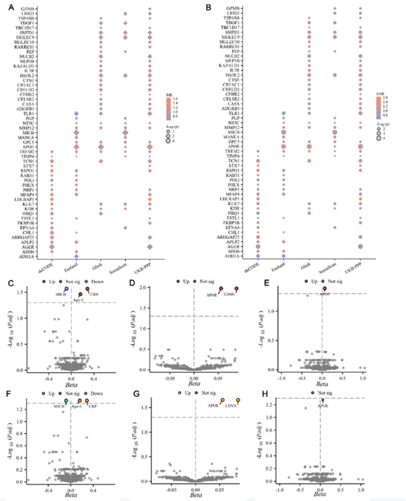 1. 筛选体系够严谨:突破单一队列局限,整合deCODE、Fenland、FinnGen、UK Biobank等5个国际大型队列,从226个蛋白中锁定ApoE,经MR、SMR、贝叶斯共定位等多重因果分析验证,排除混杂因素,确保结果可靠性;