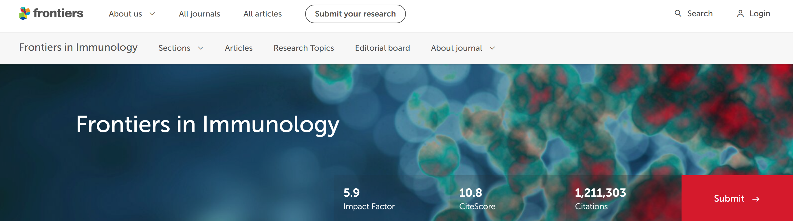 期刊官网:http://journal.frontiersin.org/journal/immunology