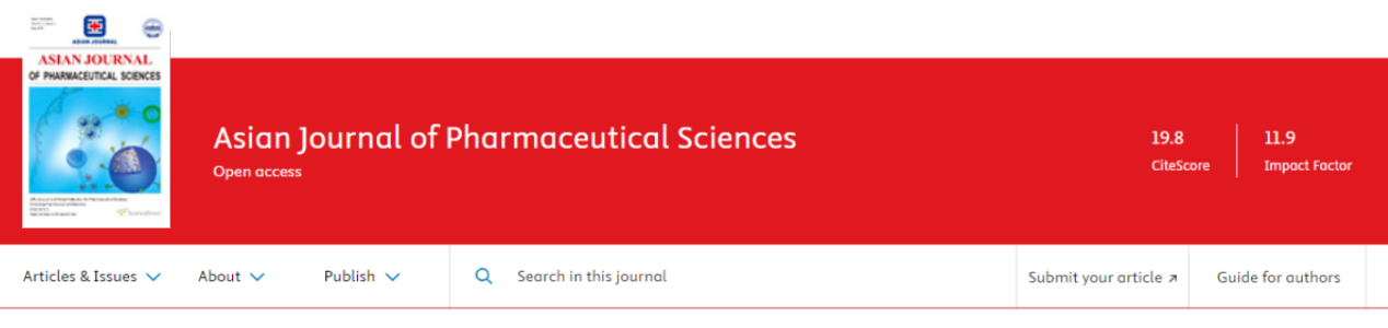 期刊官网:https://www.sciencedirect.com/journal/asian-journal-of-pharmaceutical-sciences