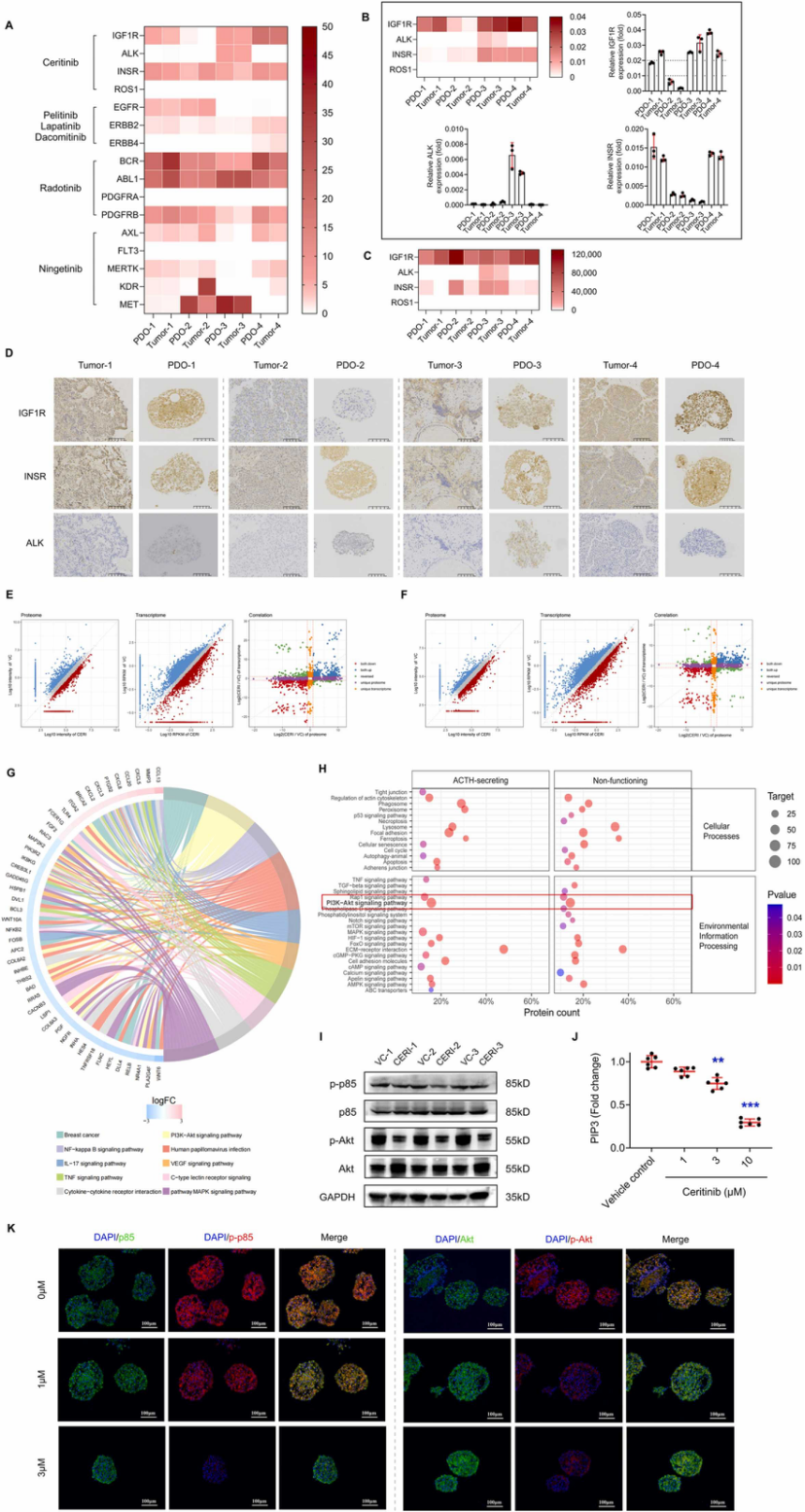 体外疗效:3μM Ceritinib 显著抑制 PDO 生长,10μM 可诱导完全裂解(图 4J);同时剂量依赖性降低 ACTH 分泌,且激素抑制作用独立于增殖抑制(图 4M-O)。