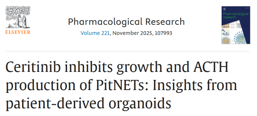 库欣病(ACTH 分泌型垂体神经内分泌肿瘤)堪称 “罕见病中的难治款”—— 发病率仅1.2-7.6 / 百万,手术复发率高达25%,且无一线靶向药物,患者长期受高激素、多器官损伤折磨!南方医科大学团队在IF=10.5 的药理顶刊《Pharmacological Research》重磅发文,首次建立库欣病患者来源类器官(PDO)模型,从 33 种酪氨酸激酶抑制剂(TKIs)中精准筛选出 Ceritinib(克唑替尼),不仅在体外体内均强效抑制肿瘤生长,还能显著降低 ACTH 分泌,通过 “IGF1R/INSR-PI3K-Akt1-Nur77-POMC” 通路实现双重疗效,为库欣病治疗带来突破性新方案!