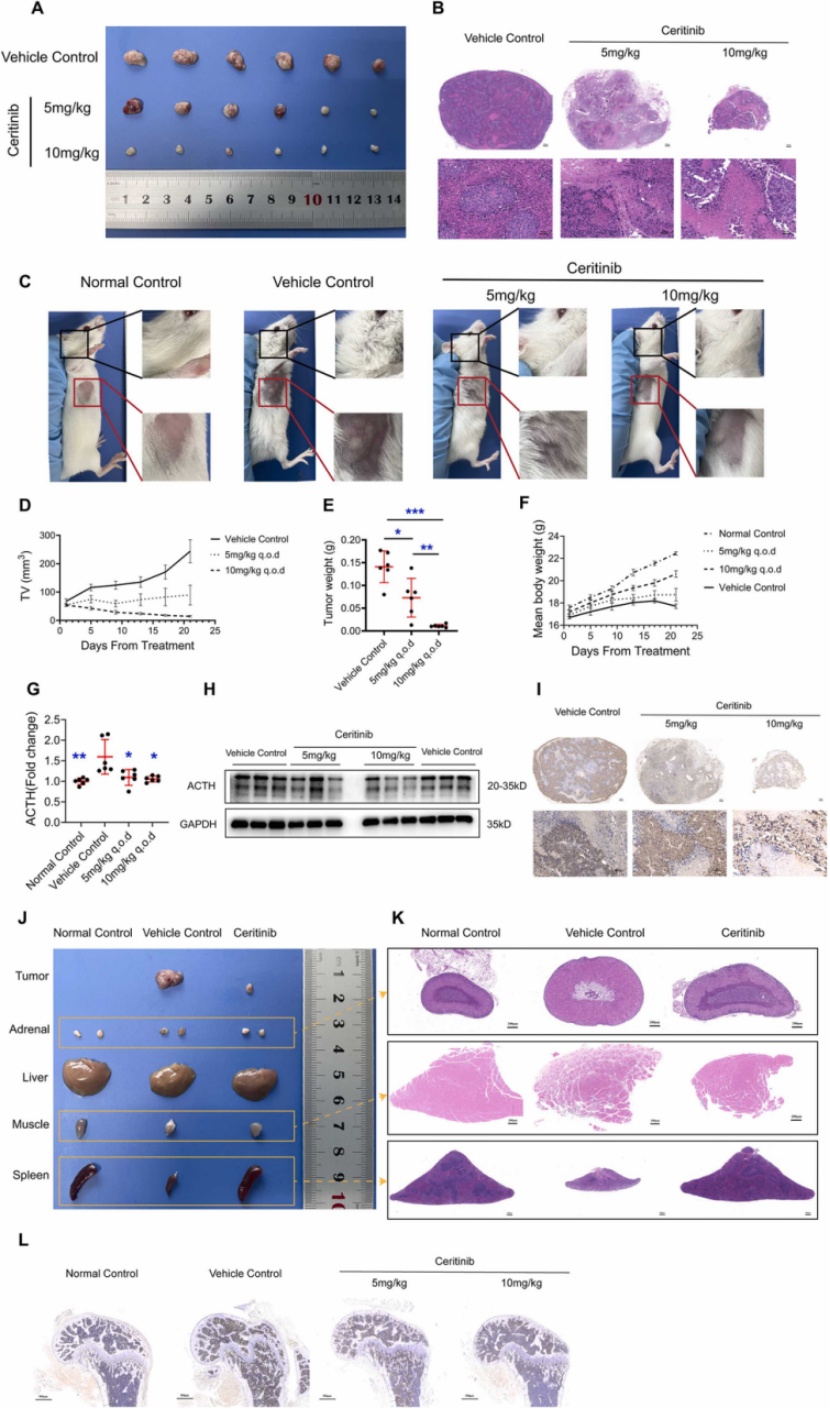 体内验证:Ceritinib 抑瘤 + 激素 normalization,改善病理损伤(图 5)