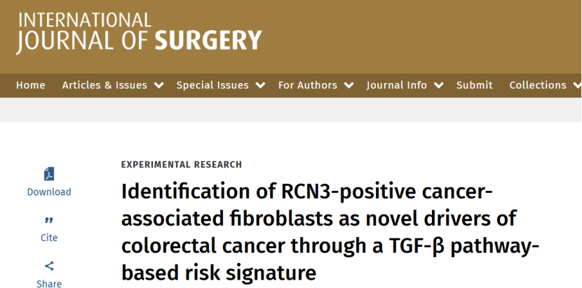 结直肠癌(CRC)治疗总被“耐药” 和“预后难测” 卡脖子—— 晚期患者 5 年生存率不足15%,免疫检查点抑制剂(ICIs)对部分患者完全无效,而TGF-β 通路虽已知促癌,却缺靠谱的临床标志物!蚌埠医学院第三附属医院、东南大学等团队联手,在IF=10.3 的外科顶刊《International Journal of Surgery》发布重磅研究:整合1000 例CRC 多组学数据,不仅打造出比139 个已发表模型更准的 TGF-β 相关风险签名(TGFRS),还揪出 RCN3 阳性癌相关成纤维细胞(RCN3⁺CAFs)这一核心促癌亚型,更找到老药dasatinib 能精准抑制它,给CRC 精准治疗和耐药逆转提供了完整解决方案!
