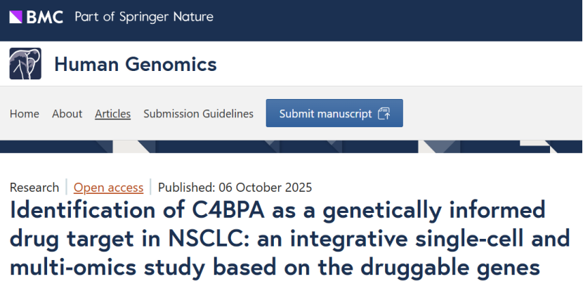 原标题:Identification of C4BPA as a genetically informed drug target in NSCLC: an integrative single-cell and multi-omics study based on the druggable genes