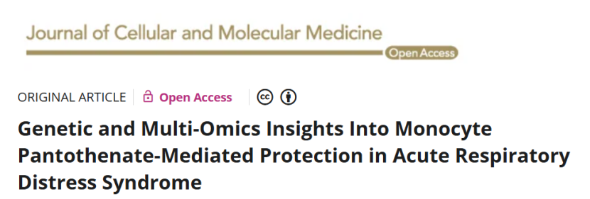 原标题:Genetic and Multi-Omics Insights Into Monocyte Pantothenate-Mediated Protection in Acute Respiratory Distress Syndrome