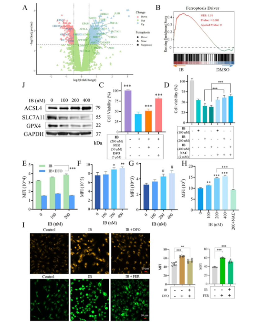 2. 第二步:多组学联合证实,IB 通过诱导铁死亡发挥抗肿瘤作用(图 3、图 4)