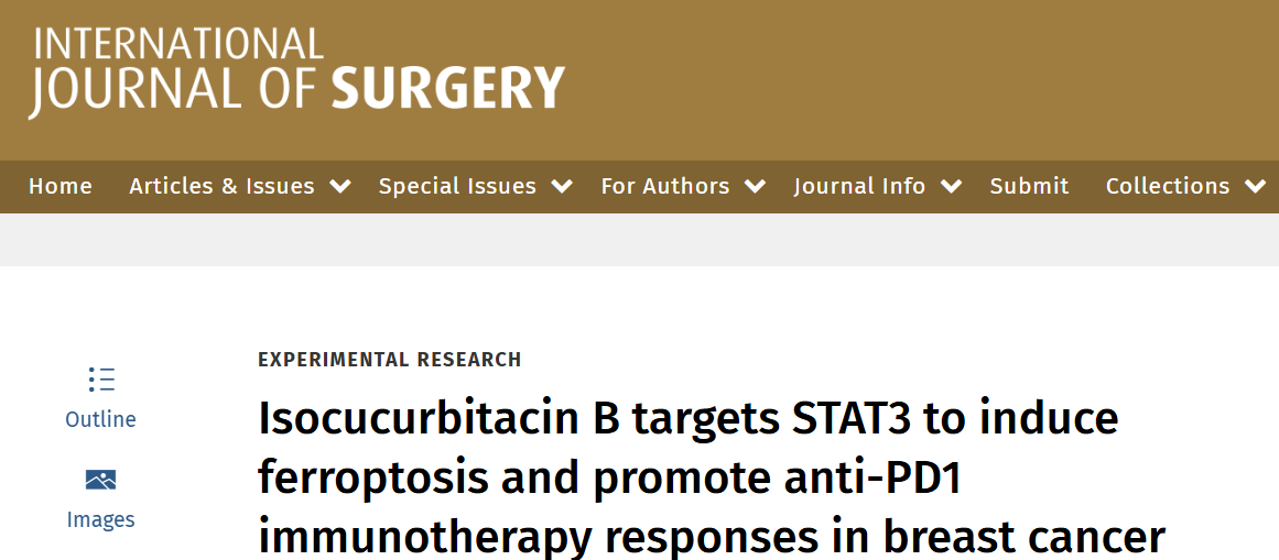 原标题:Isocucurbitacin B targets STAT3 to induce ferroptosis and promote anti-PD1 immunotherapy responses in breast cancer