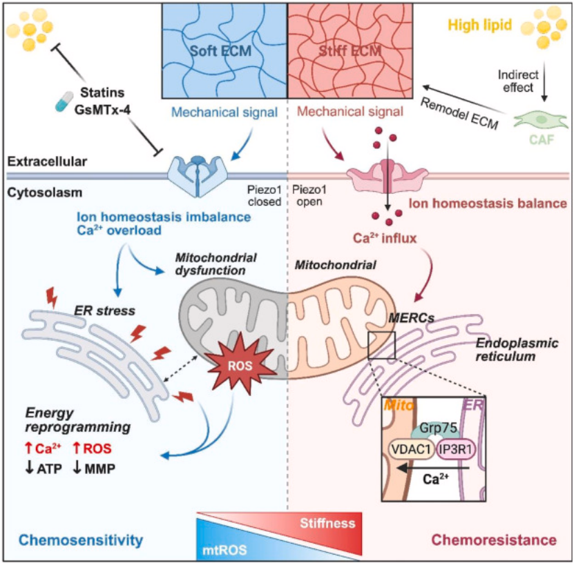 原标题:High-fat diet induced ECM remodeling attenuates chemosensitivity in prostate cancer via activating Piezo1-dependent mitochondria-ER contacts