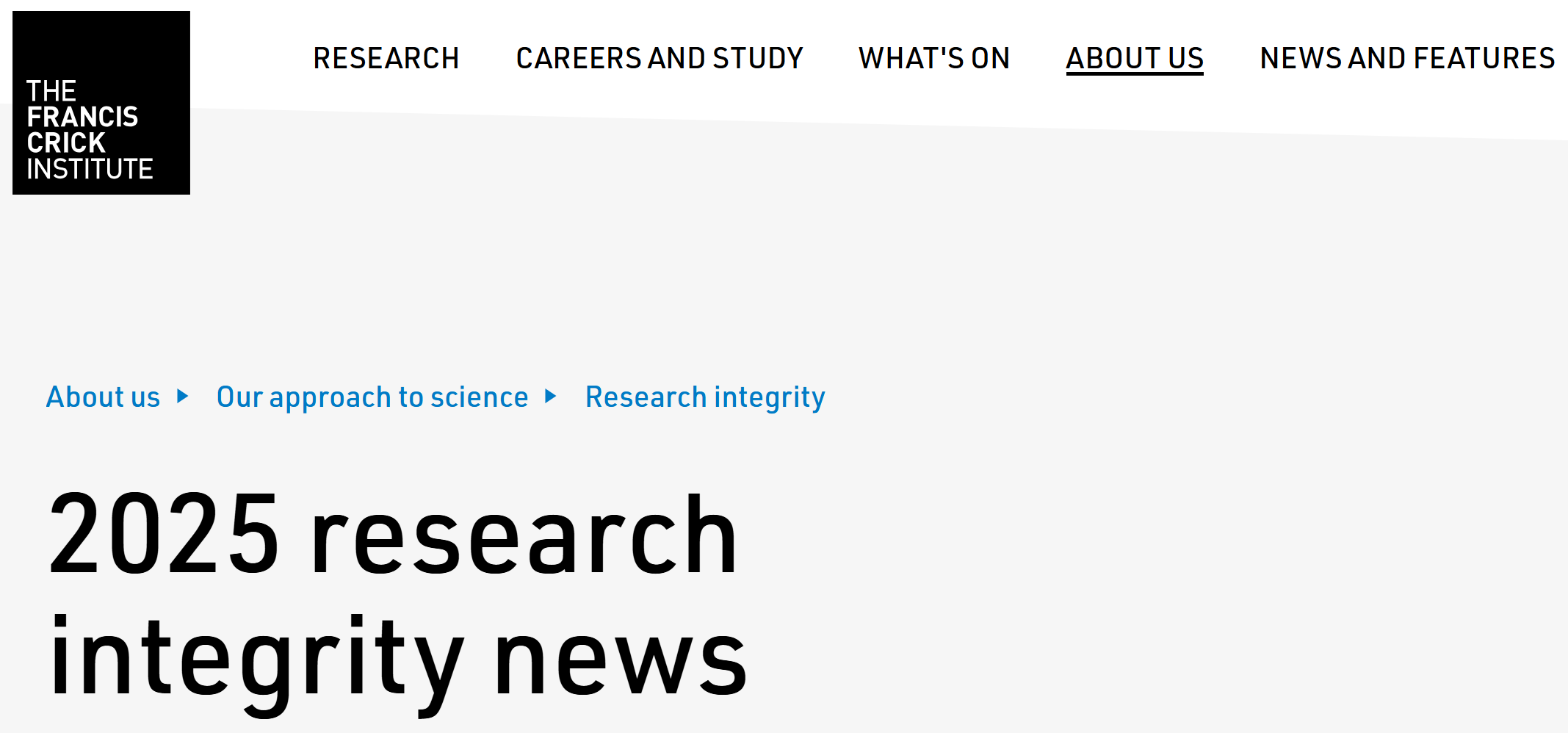 https://www.crick.ac.uk/about-us/our-approach-to-science/research-integrity/2025-research-integrity-news