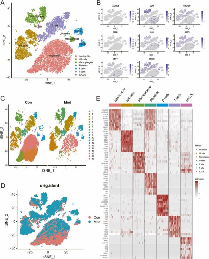 巨噬细胞、NK 细胞比例显著升高,中性粒细胞减少(图 3C-D);