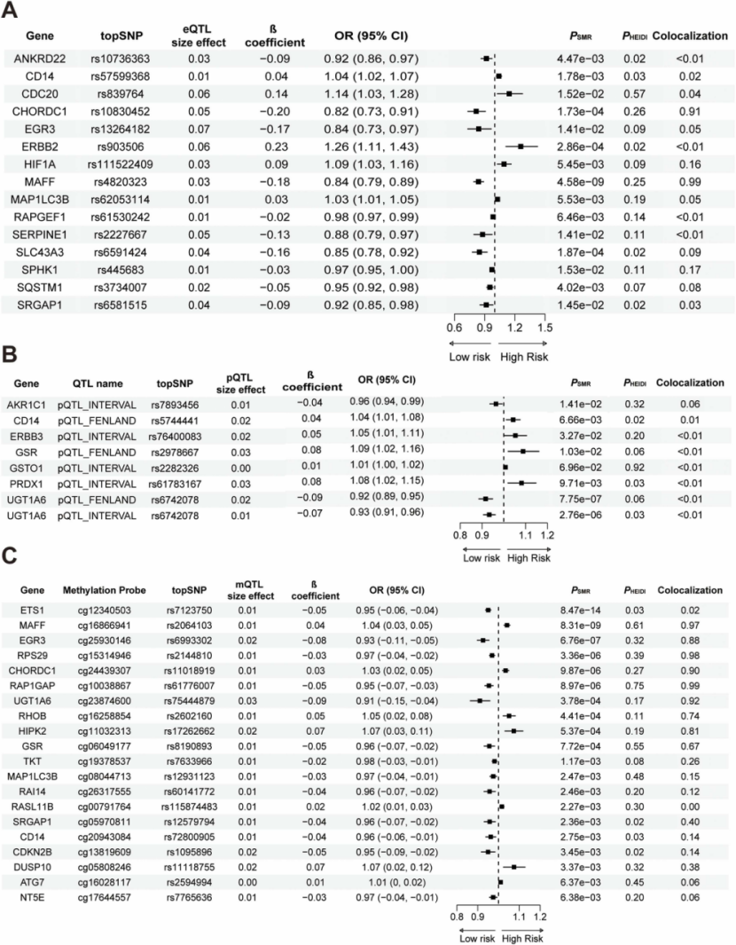 质控:用 HEIDI 检验排除多效性,FDR<0.1 筛选显著关联。