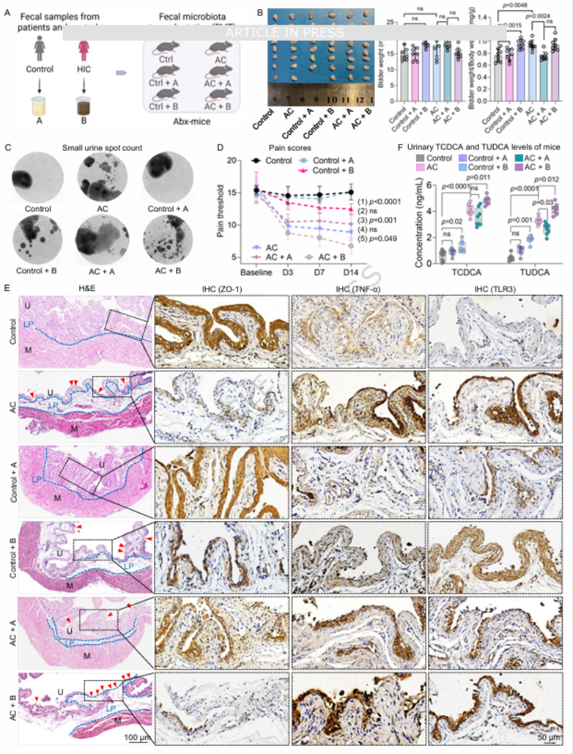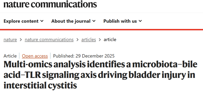 原标题:Multi-omics analysis identifies a microbiota–bile acid–TLR signaling axis driving bladder injury in interstitial cystitis